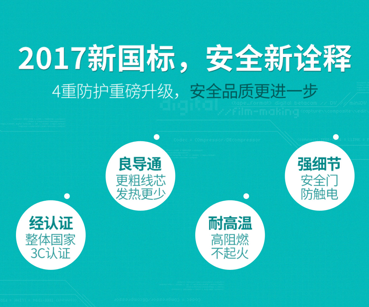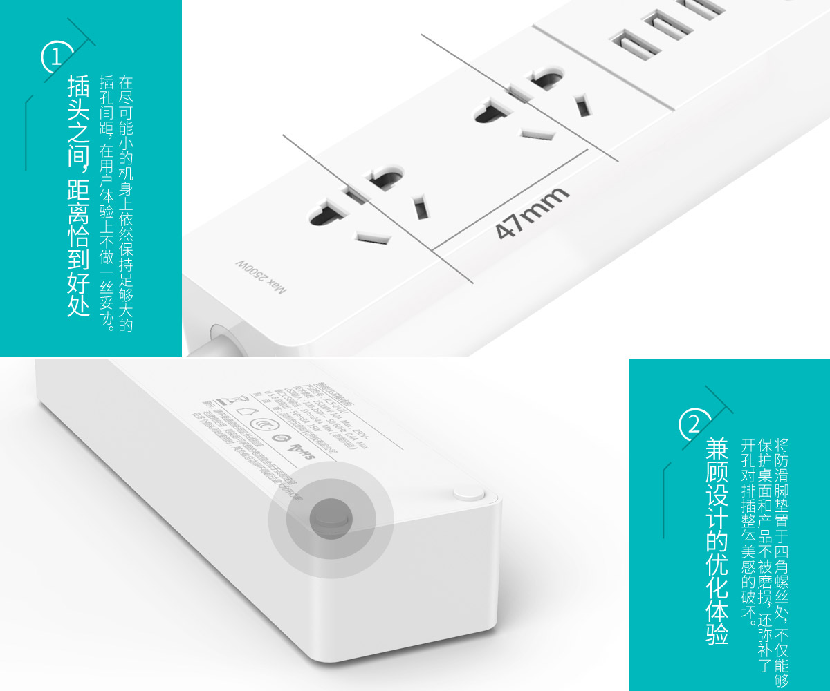 新國標便攜桌面式排插,雙極門獨立開關,2500W大功率