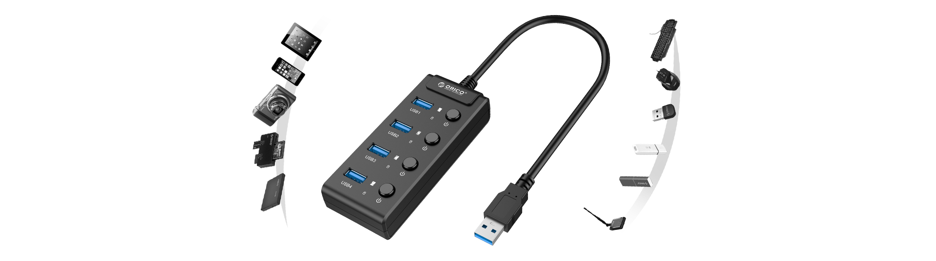 植入4個(gè)接口控件開關(guān),一鍵控制所接入設(shè)備,不必再麻煩的反復(fù)插拔了,更為便捷的同時(shí)還可以有效的保護(hù)設(shè)備插拔口,而且您還可以通過控鍵手動(dòng)分配USB3.0端口的擴(kuò)展帶寬和電源供電。