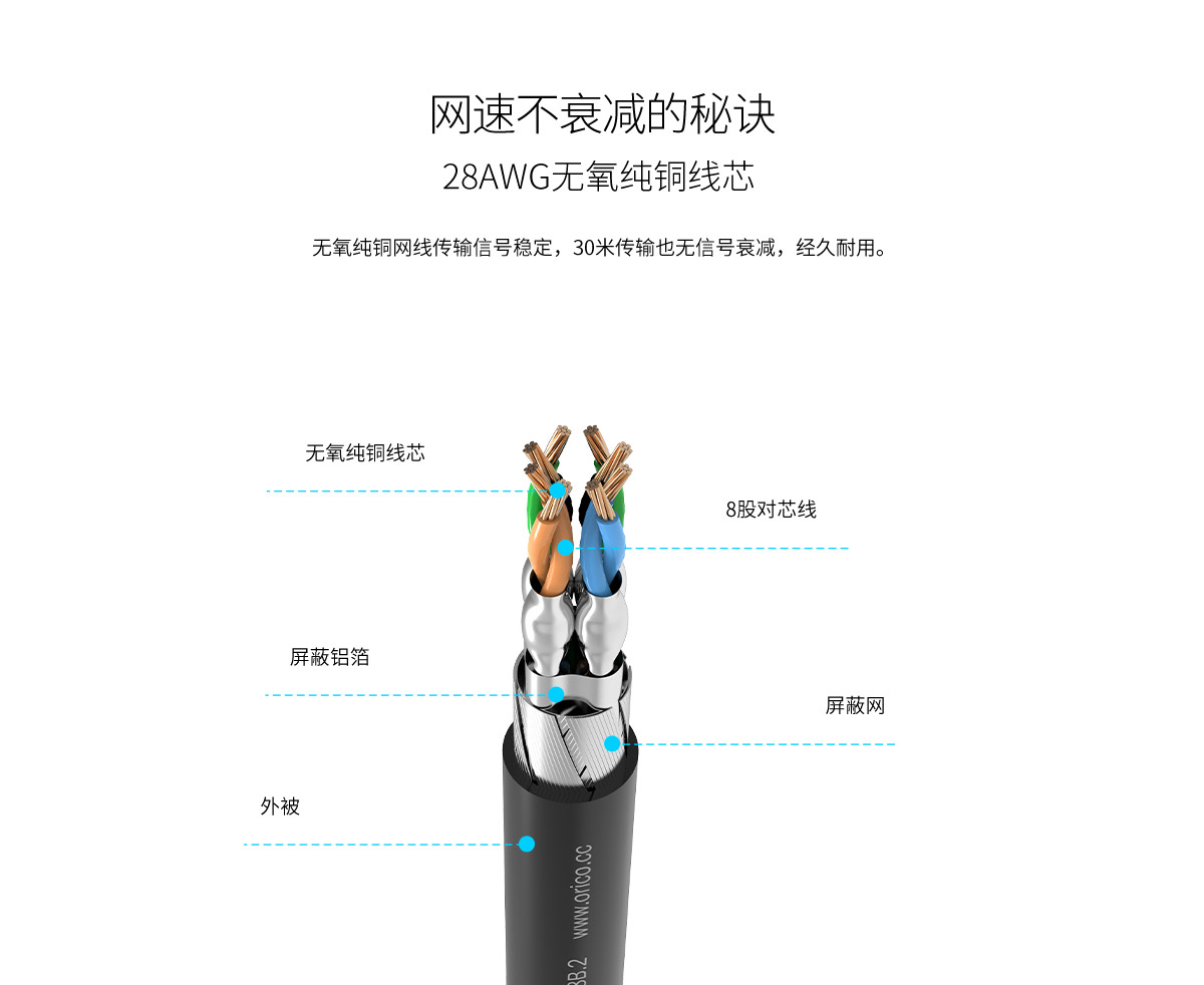 萬兆帶寬,純銅線芯,8芯雙絞,PVC材質(zhì),金屬水晶接口