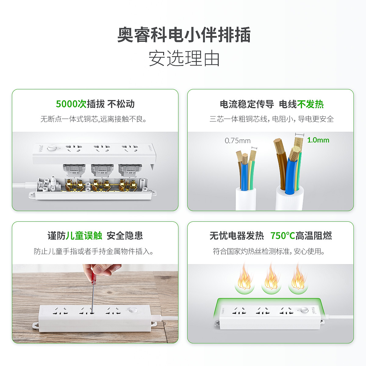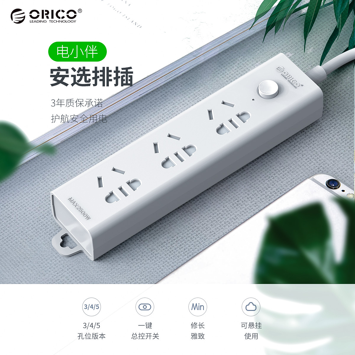 電小伴5AC口國標智能純AC延長線排插