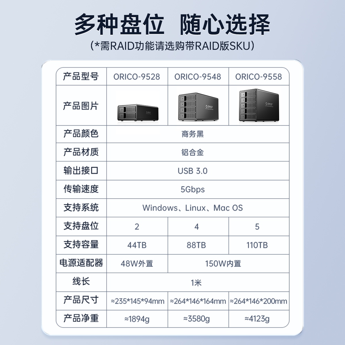 3.5英寸USB3.0鋁合金五盤位陣列柜