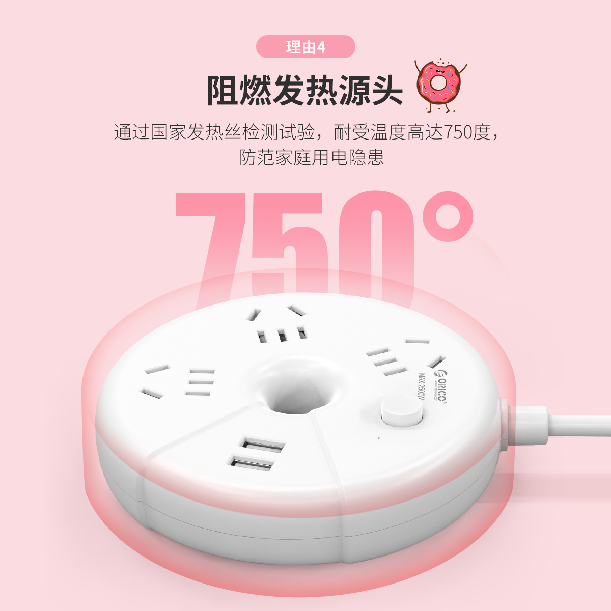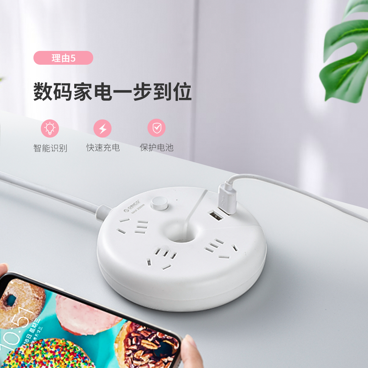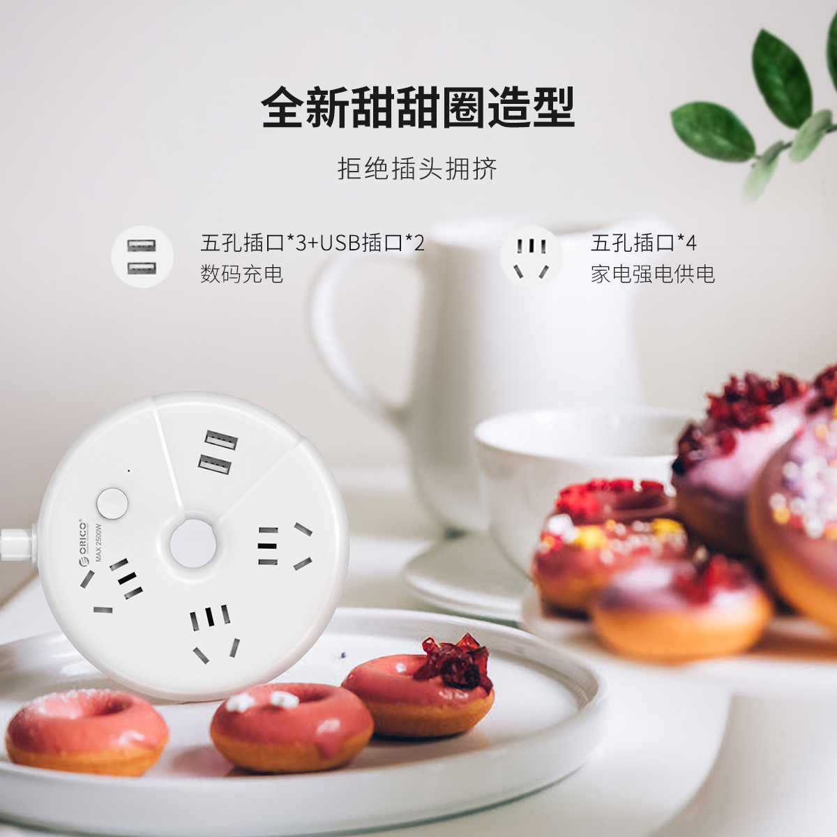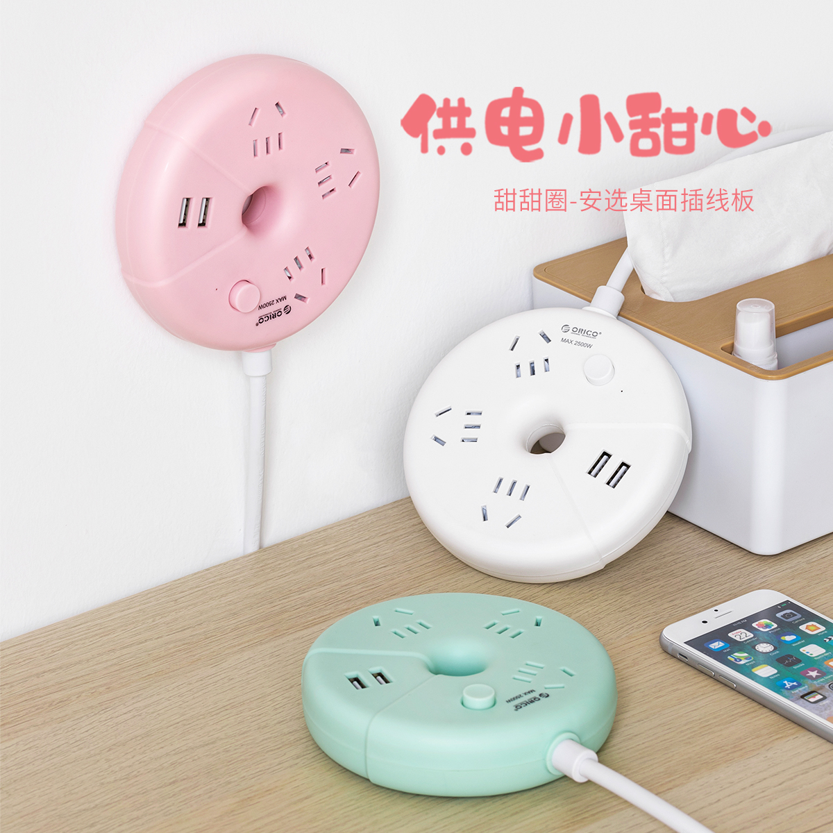 甜甜圈桌面插線板,純AC延長線插座