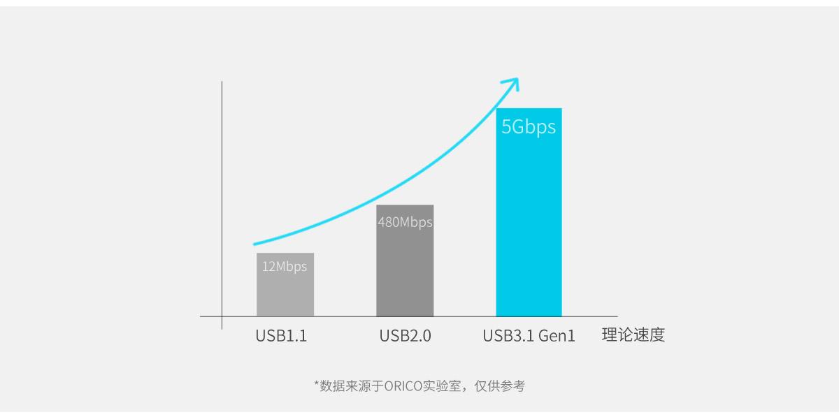 采用SATAⅢ to USB3.1 GEN1方案,理論速度可達6Gbps,配合高速SSD固態硬盤傳輸速度可達500M/S,傳輸一部1GB的高清電影僅需2秒。