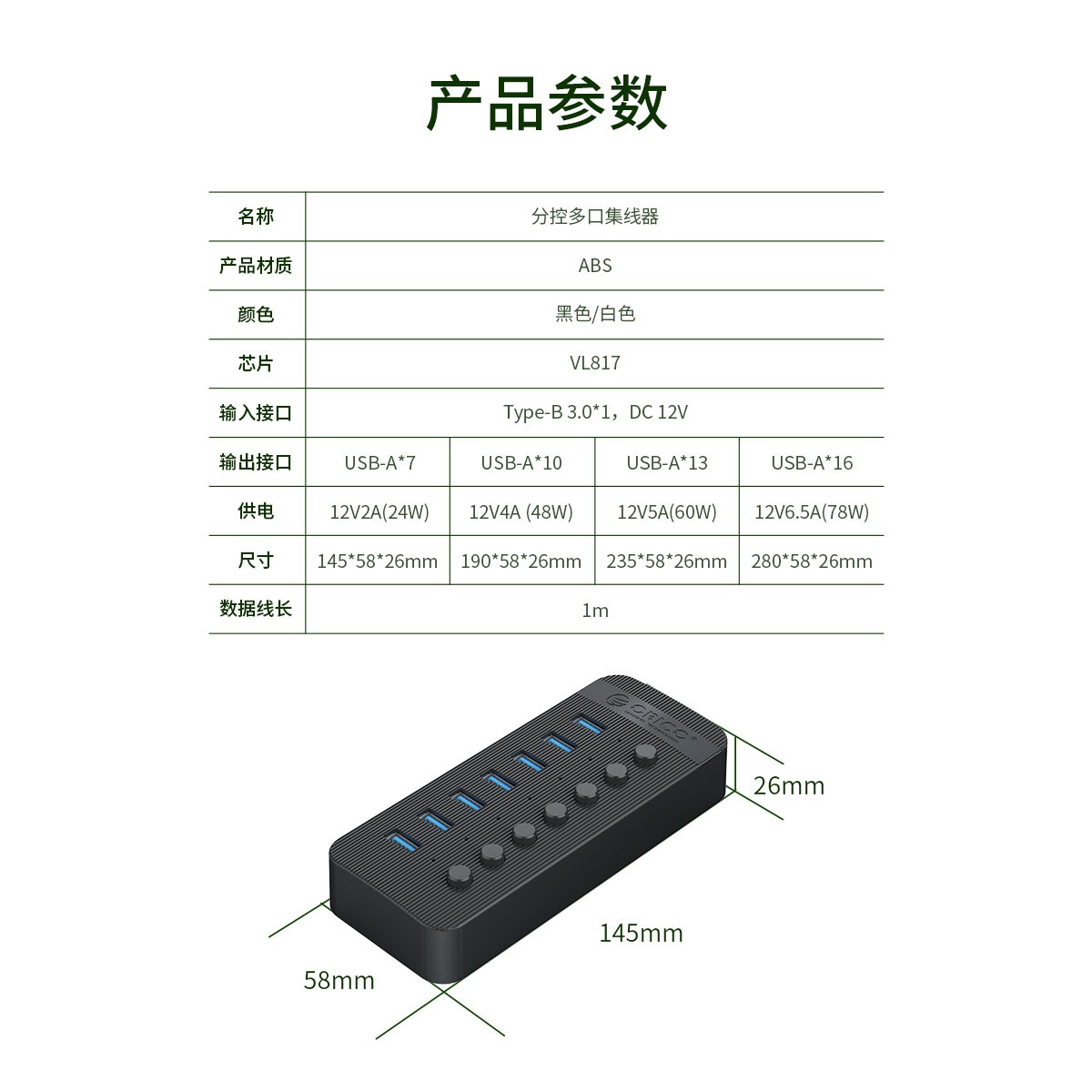 工業(yè)級USB3.0,塑料條紋分控,5Gbps,2.4A電流,黑白雙色
