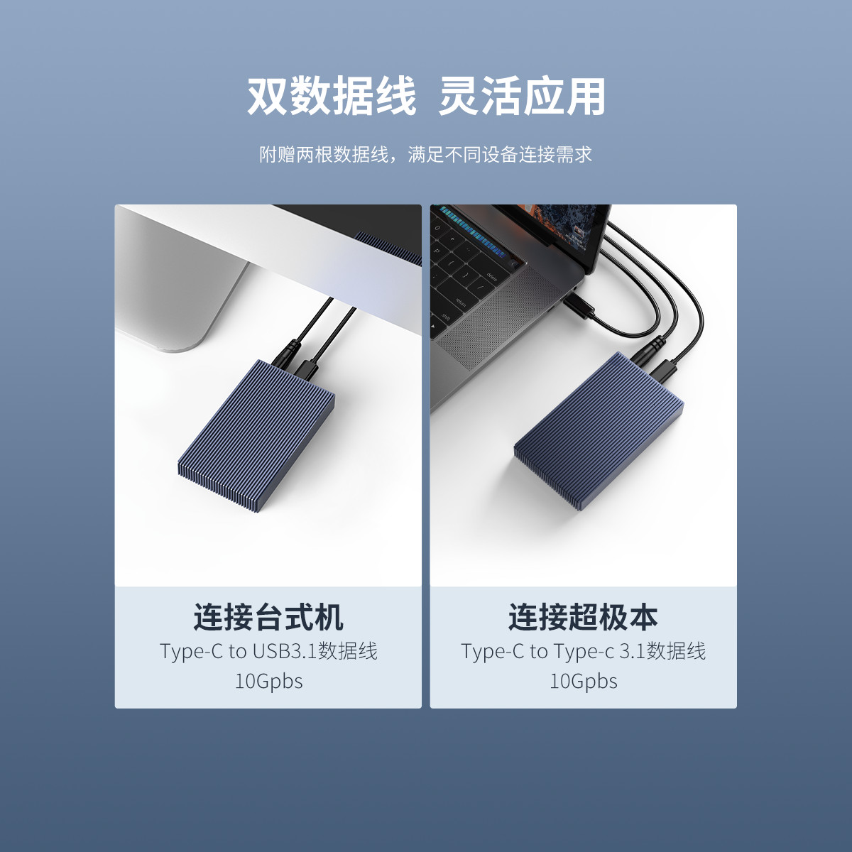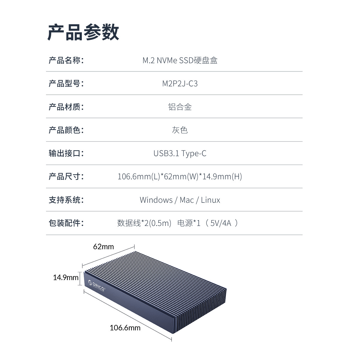 Type-c雙盤位M.2 NVMe硬盤盒,利用條紋散熱棱擴(kuò)大散熱面積,雙盤位4TB