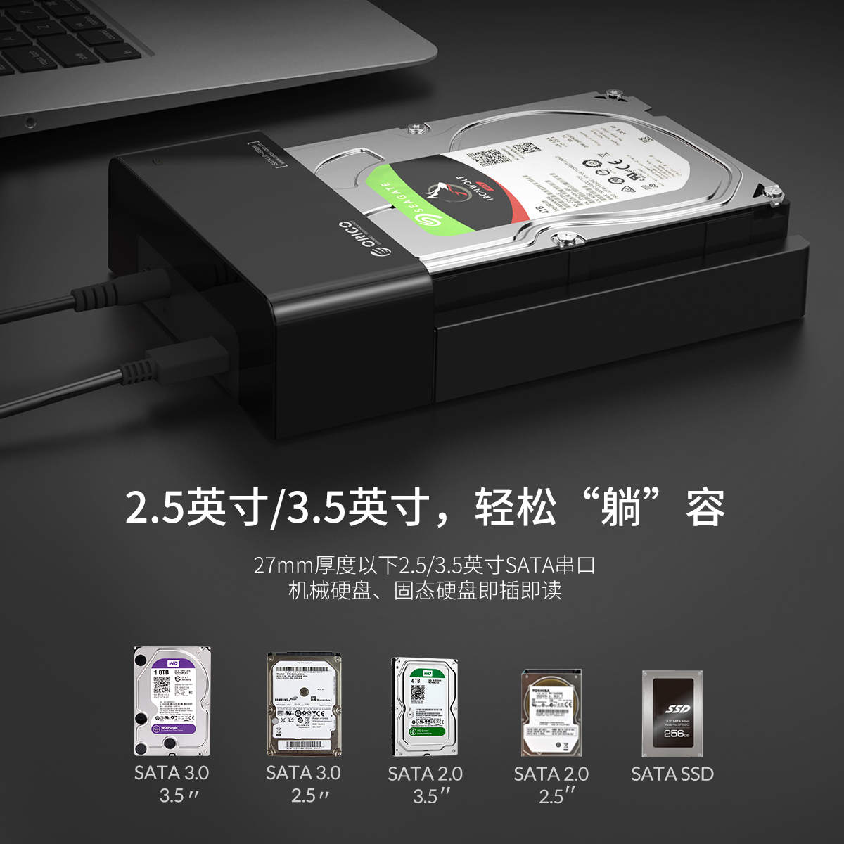 2.5/3.5英寸通用USB3.1 Type-C硬盤底座