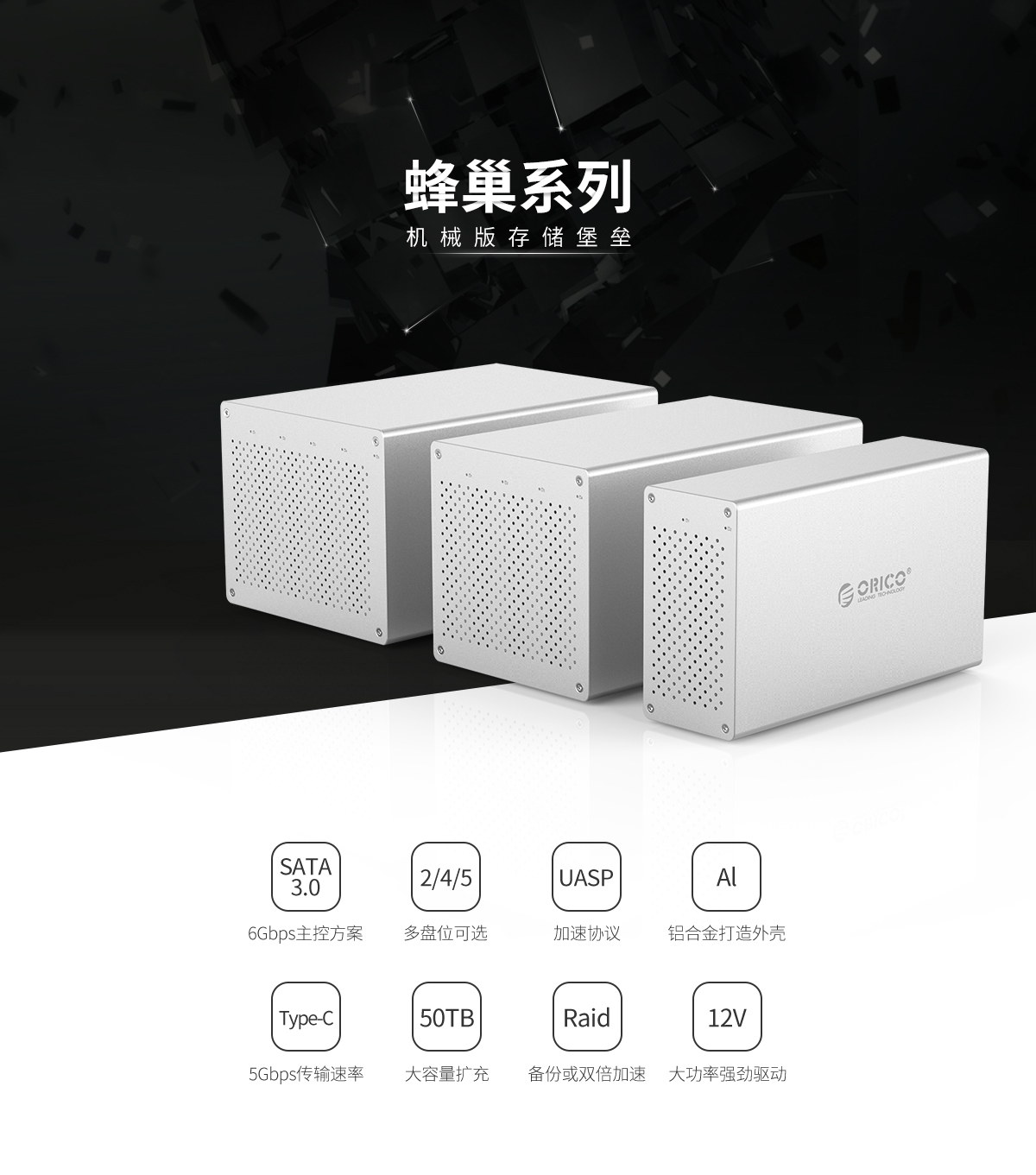 支持50TB容量,支持UASP加速協(xié)議,蜂窩式對(duì)流散熱,支持智能休眠