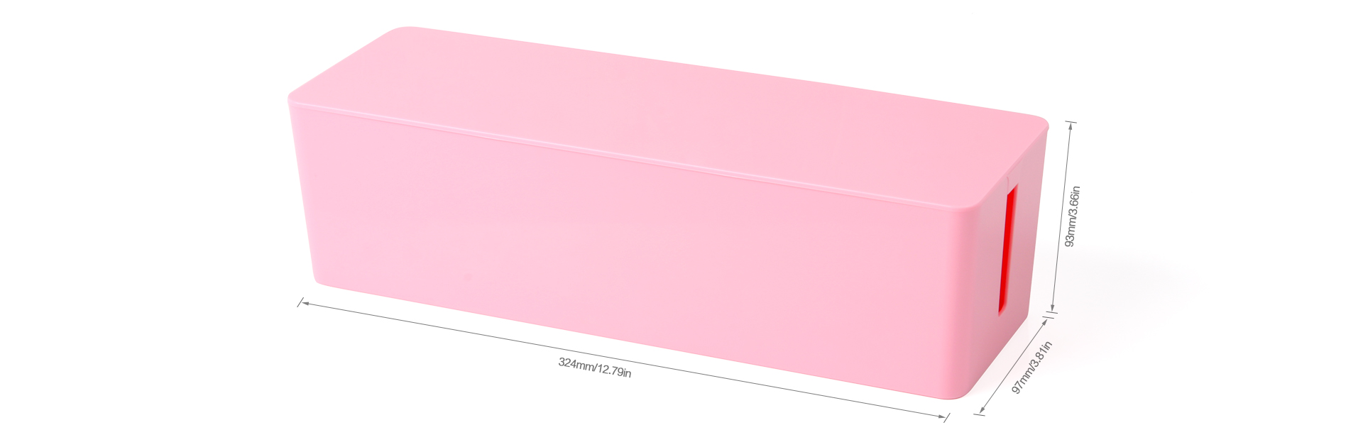 根據(jù)多次調(diào)試和試用體驗(yàn),設(shè)計(jì)師采用了合理的尺寸大小重新定義了線材收納盒,324mm*97mm*93mm的大小既能避免不能容納插線板的尷尬,又能正常收納您的瑣碎物品,給您更多創(chuàng)意使用體驗(yàn)。