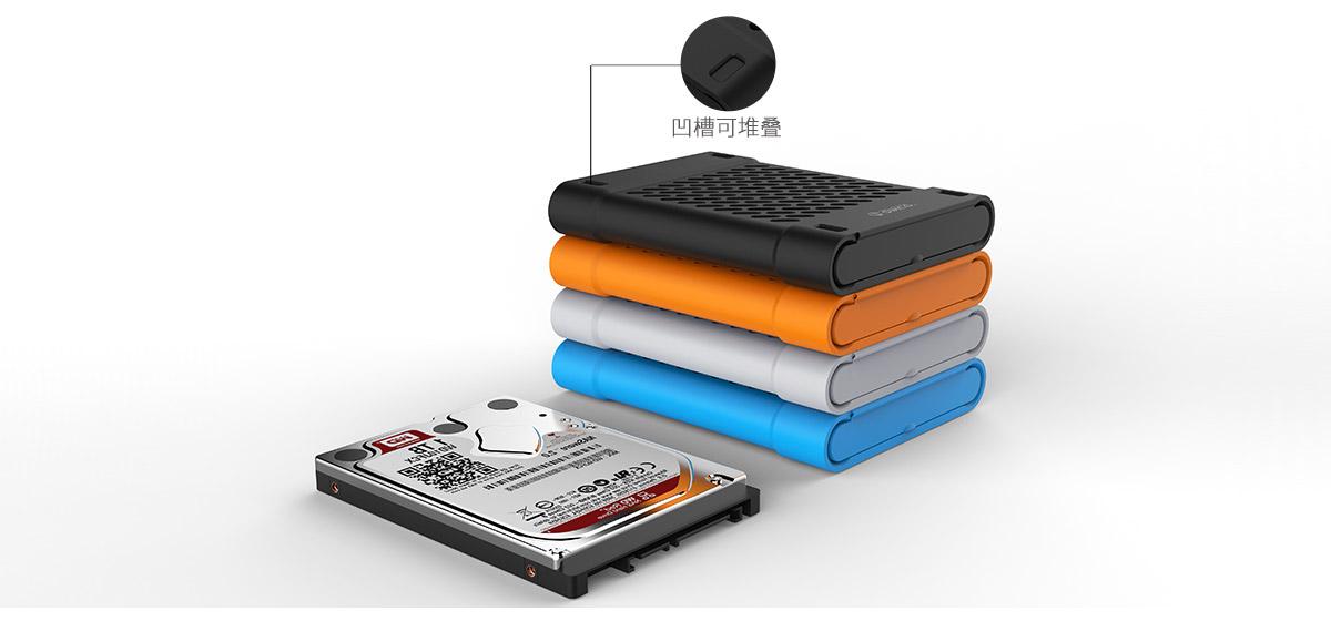 便于疊放的卡槽設計,就算是多個硬盤保護套疊放起來也能更加容易、牢靠、巧妙減少桌面占用空間與凌亂感。