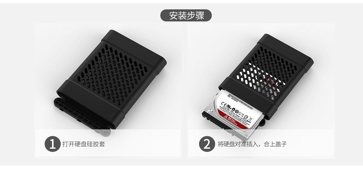 采用高彈力硅膠制作,收縮性好,可兼容12.5mm以下厚度的2.5英寸硬盤。