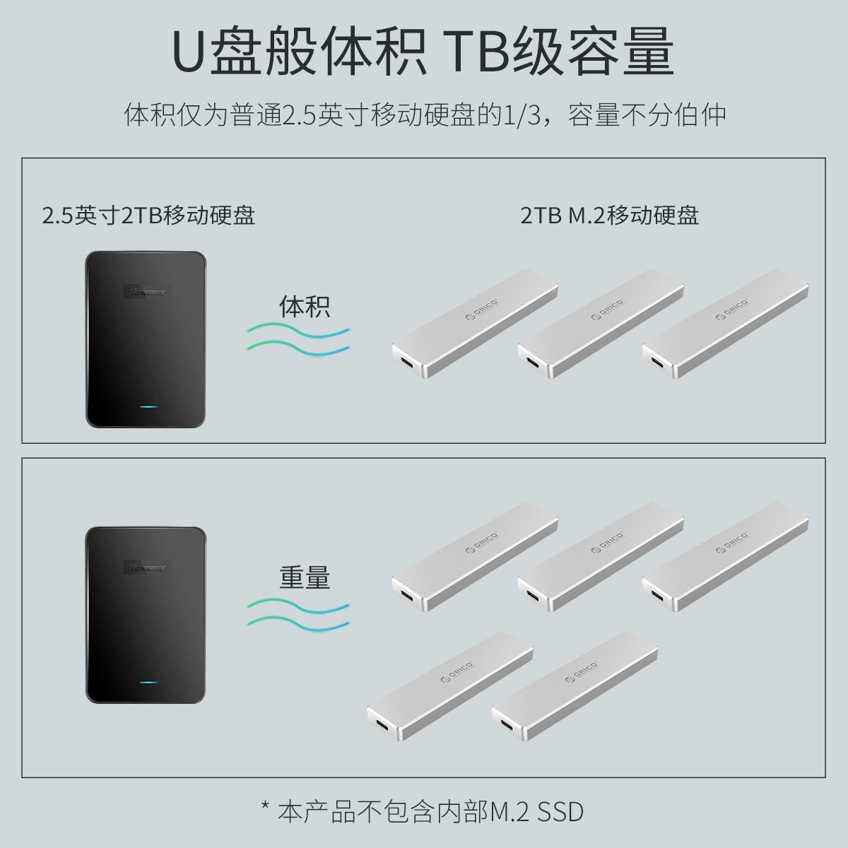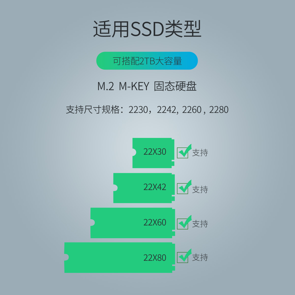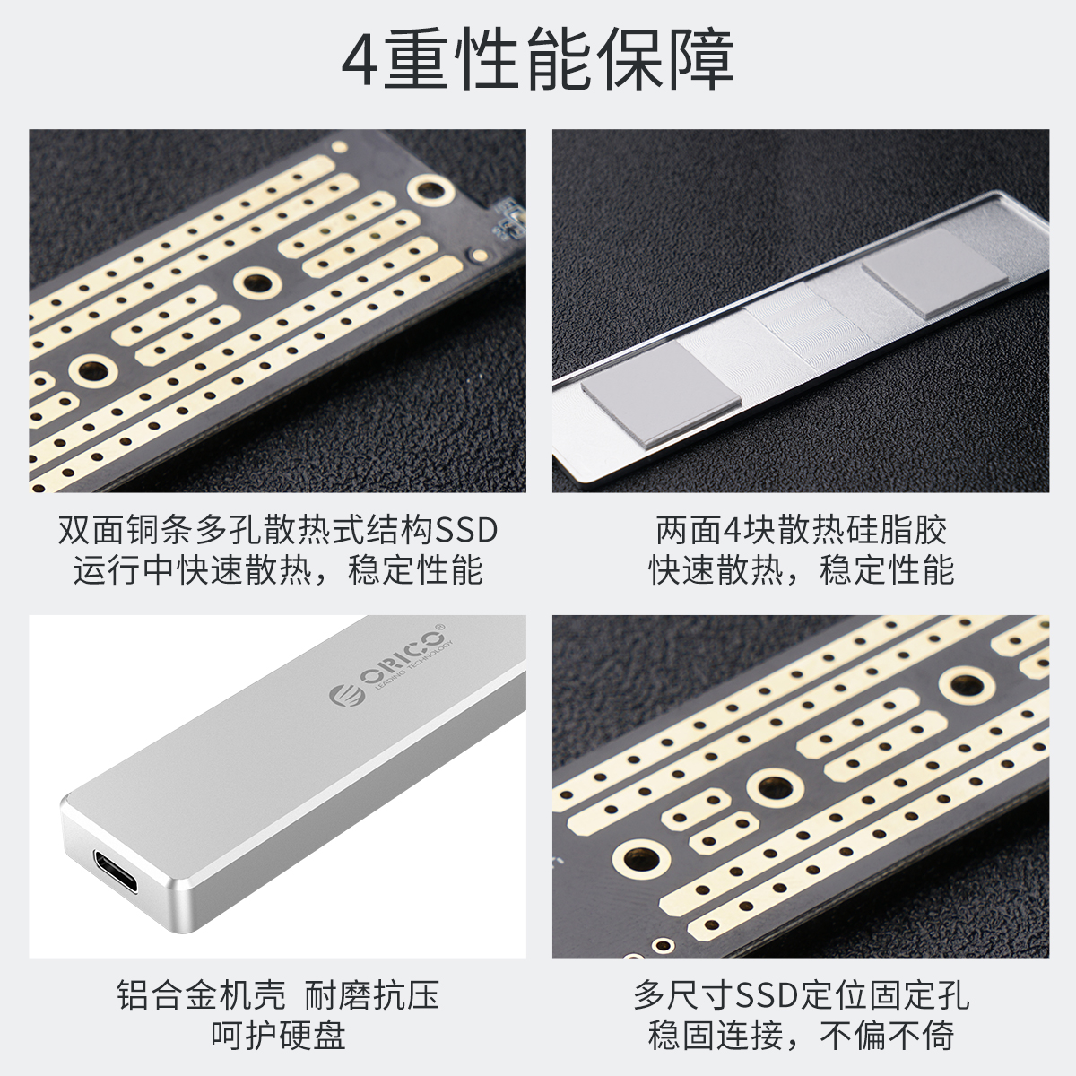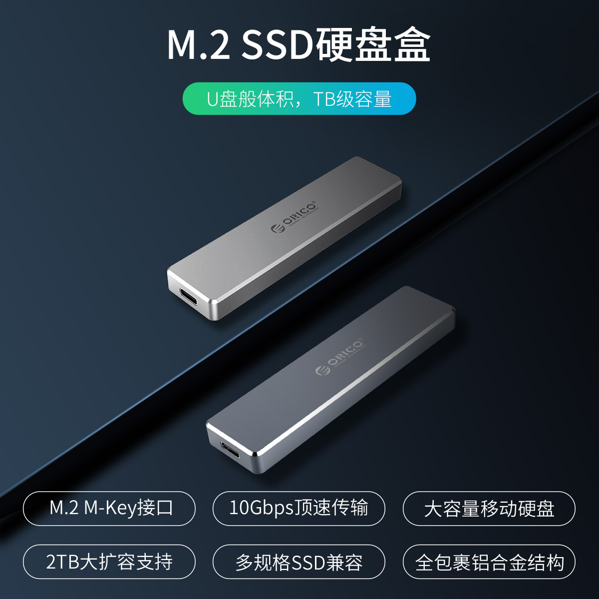 鋁合金材質,支持2230/2242/2260/2280四種M.2 SSD,10Gbps頂速傳輸,2TB大容量支持,C TO C傳輸線。