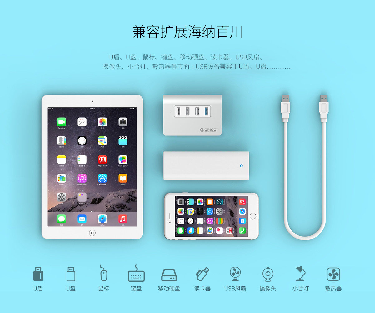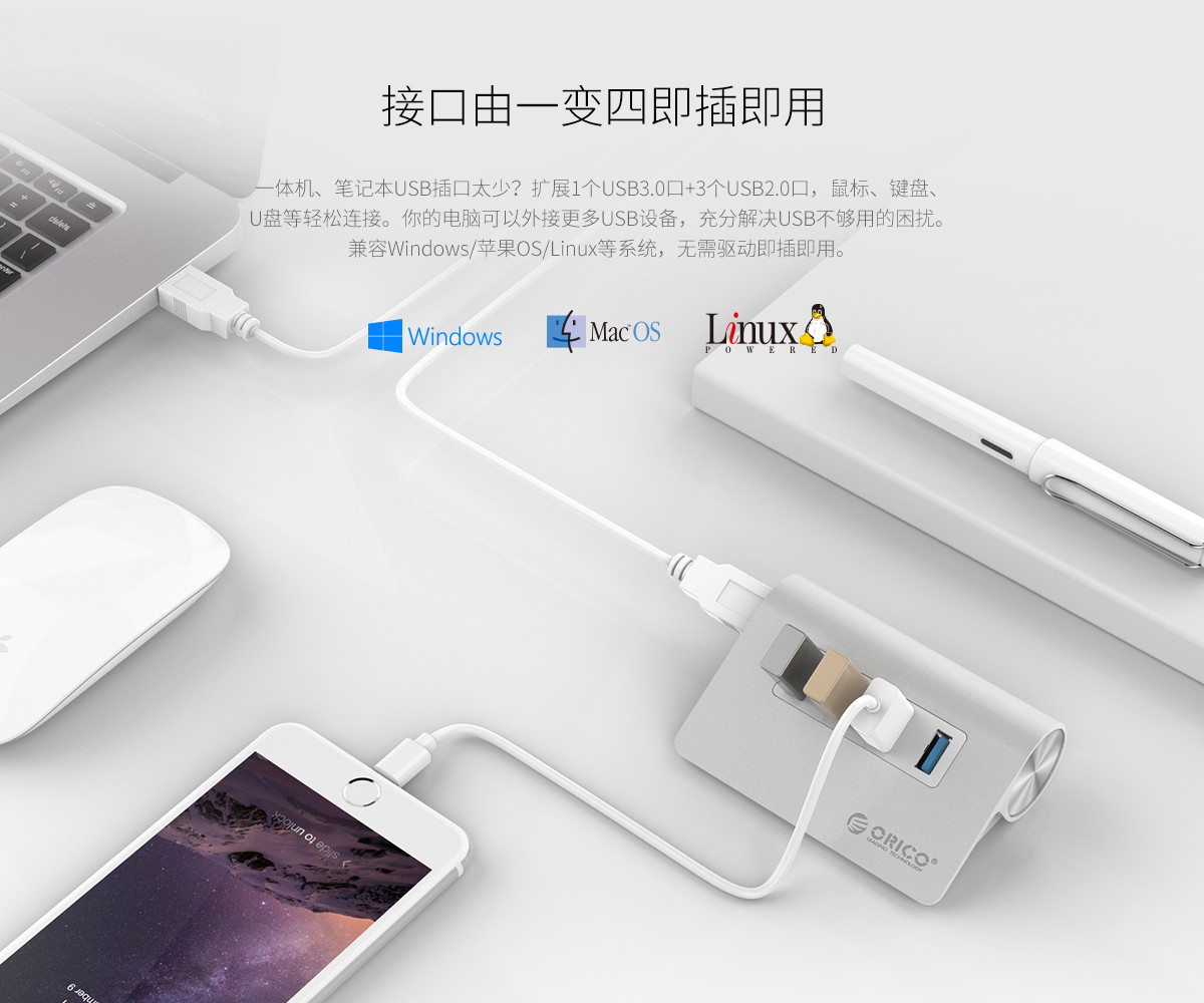 4口USB3.0高速擴展 MAC風(fēng)格 人體工學(xué)斜面設(shè)計 全鋁合金材質(zhì) RTS5411芯片