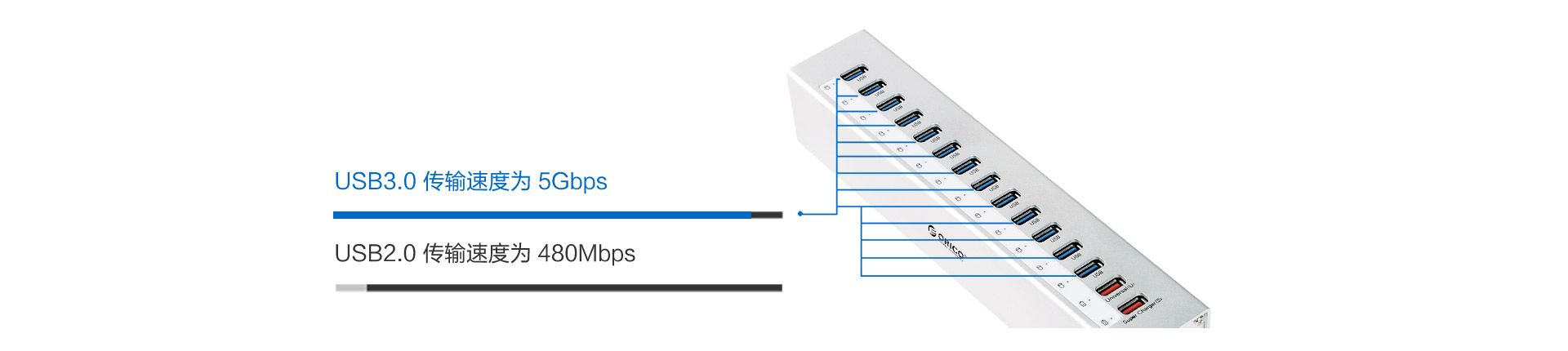 ORICO在打造設備擴展方案的同時,考慮到用戶需求,配備15個USB HUB接口,充分滿足數碼玩家的需求,設備之間搭配更加得心應手!