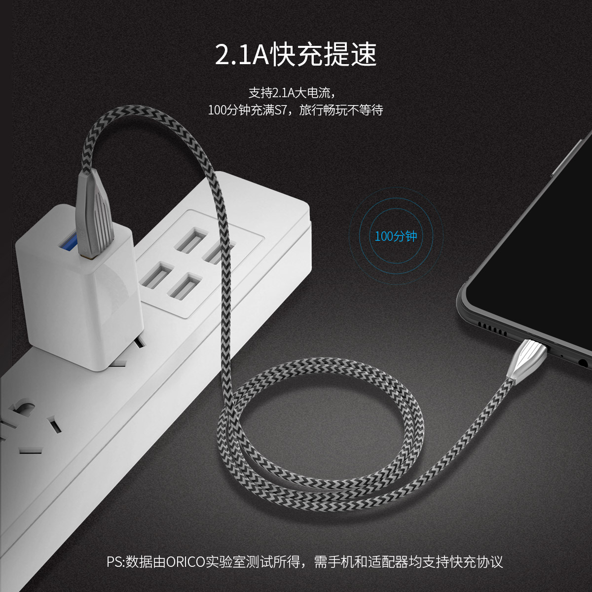 支持2.1A大電流,鋁合金外殼不發(fā)燙,加粗銅芯,電阻小,編織線身