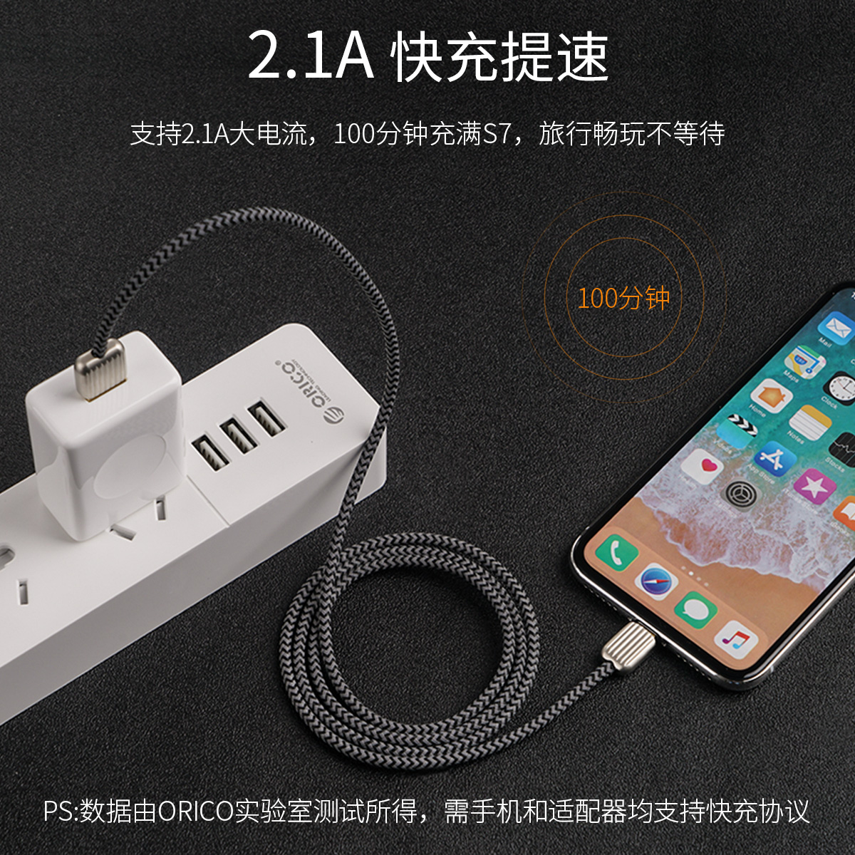 支持2.1A大電流,鋁合金外殼不發(fā)燙,加粗銅芯,電阻小,編織線身