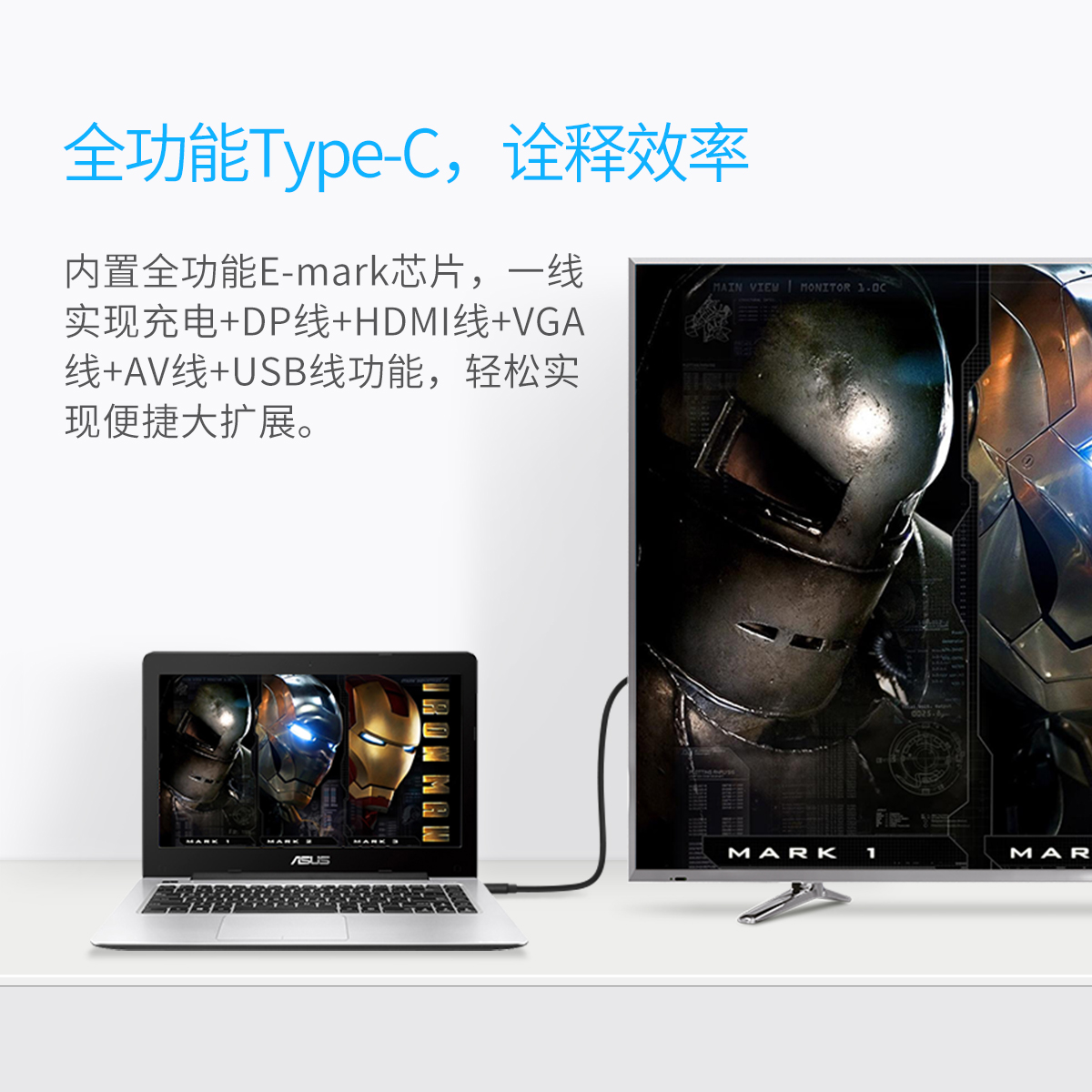 內(nèi)置全功能E-mark芯片,一線實(shí)現(xiàn)全功能,輕松實(shí)現(xiàn)便攜大擴(kuò)展