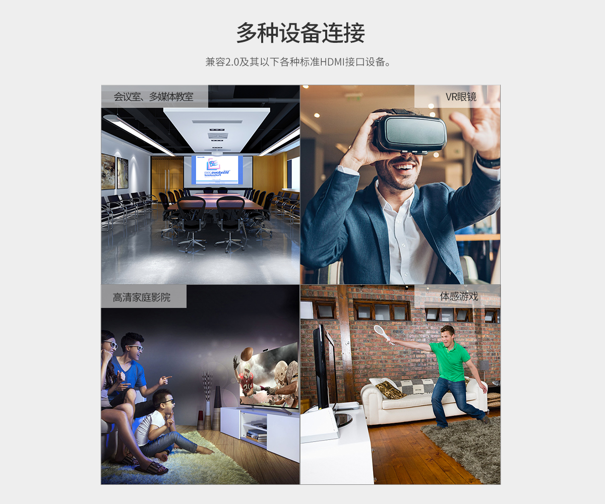 雙磁環抗干擾,3D視效,4K畫質,多設備可使用,音視頻同傳
