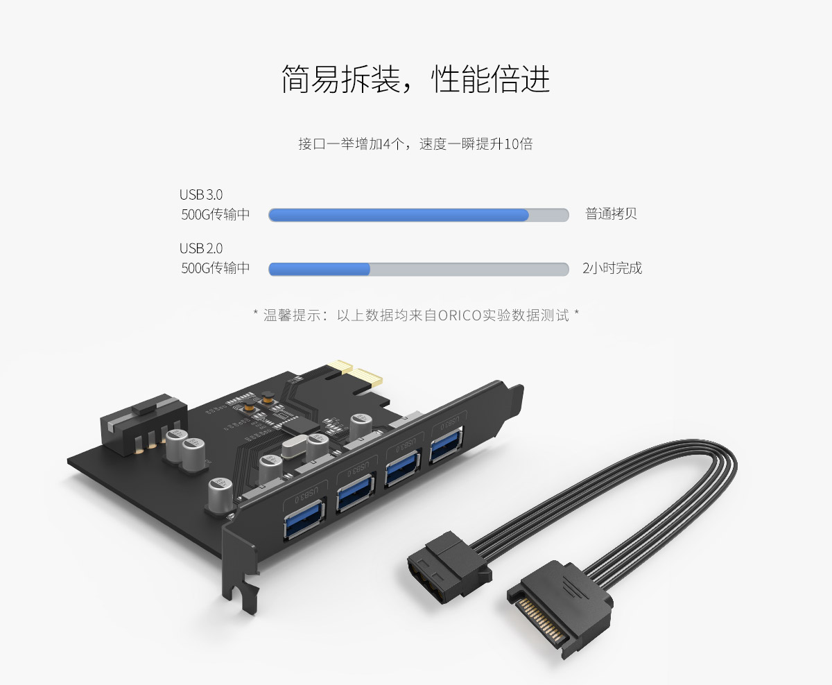 2口擴展卡,4個USB3.0接口,5Gbps傳輸速度,簡易拆裝