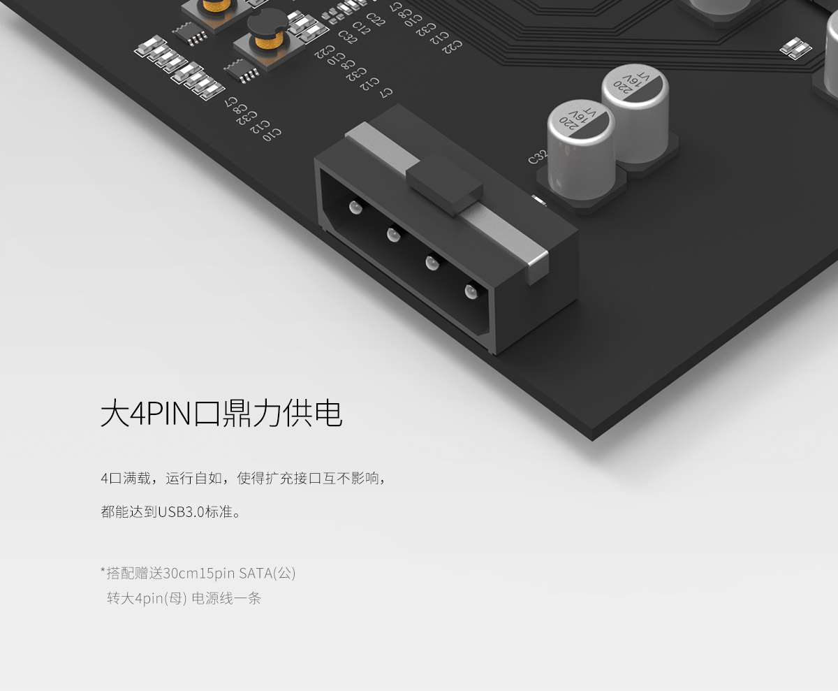 4口USB3.0 PCI-E擴展卡,帶4PIN供電口