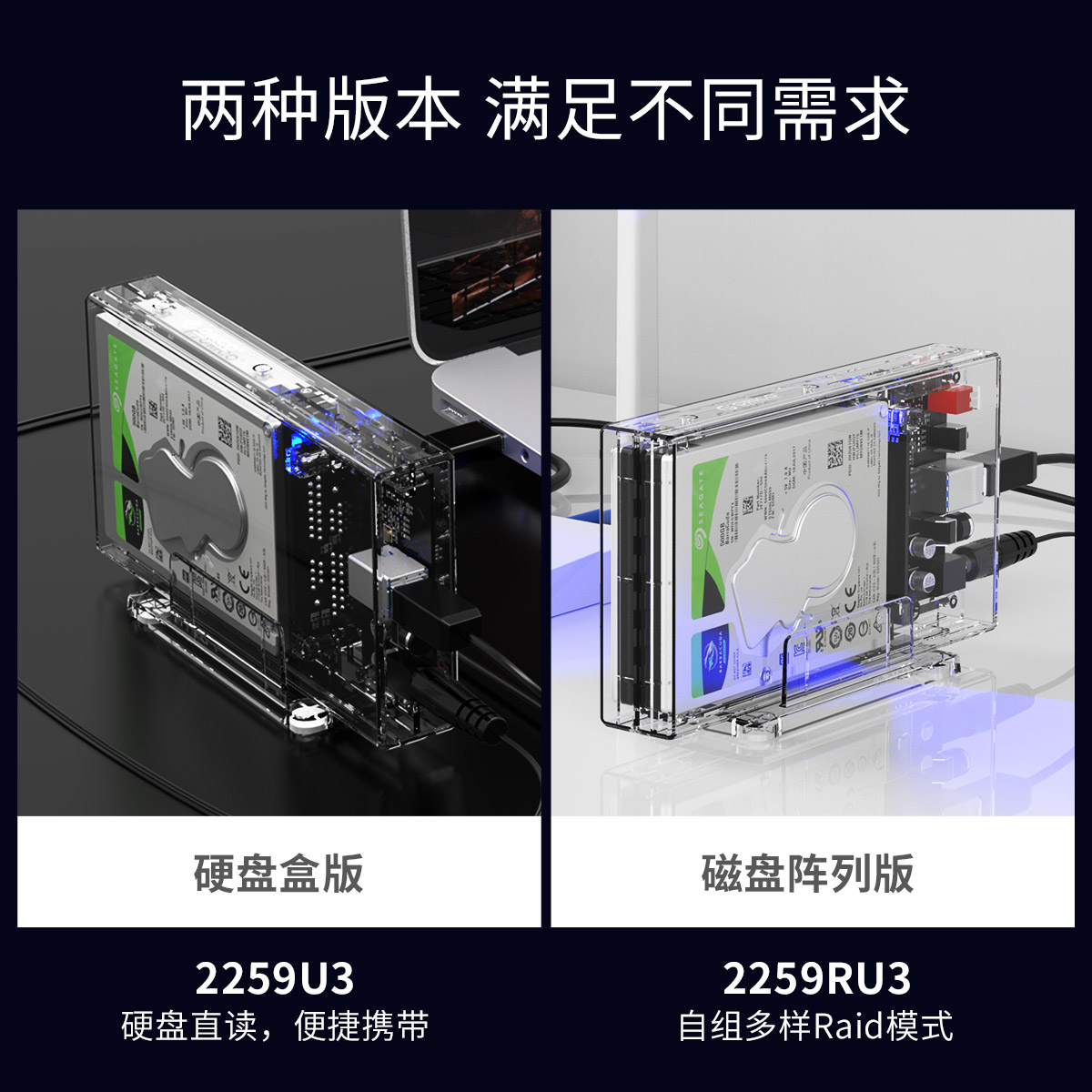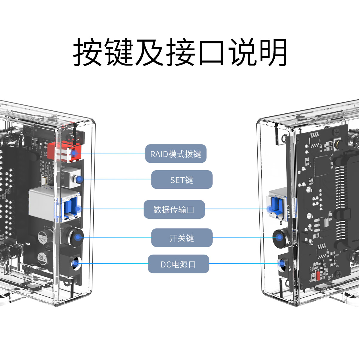 2.5英寸帶raid雙盤位透明硬盤盒