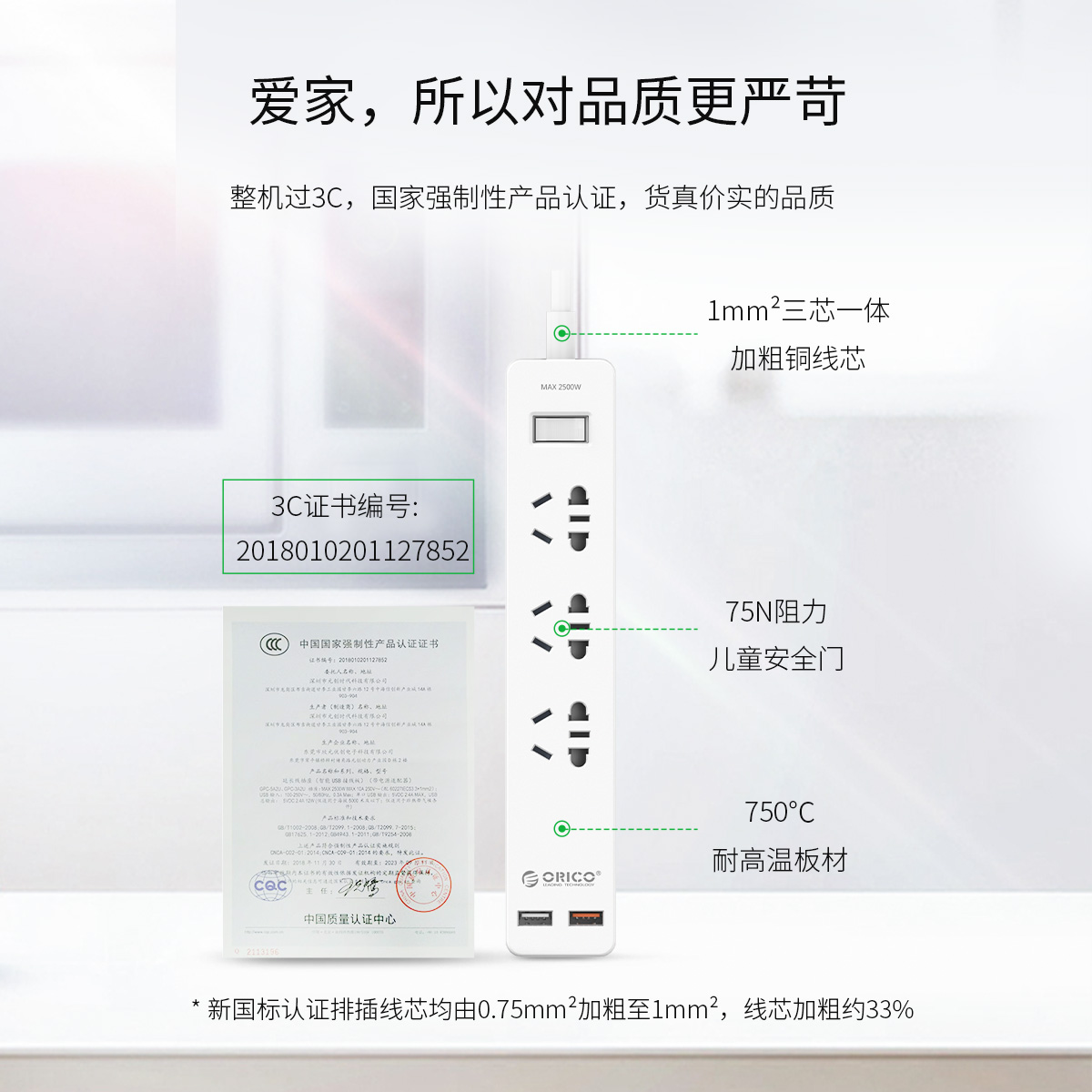 新國標AC口*3, USB口*1,QC3.0*1,1.5米電源線