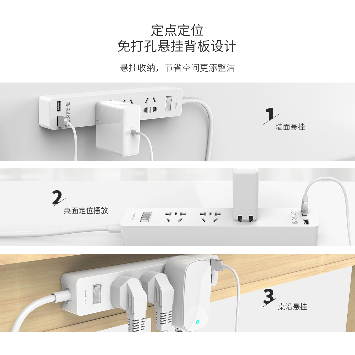 懸掛式新國標3AC口2usb口智能家居排插(快充版)
