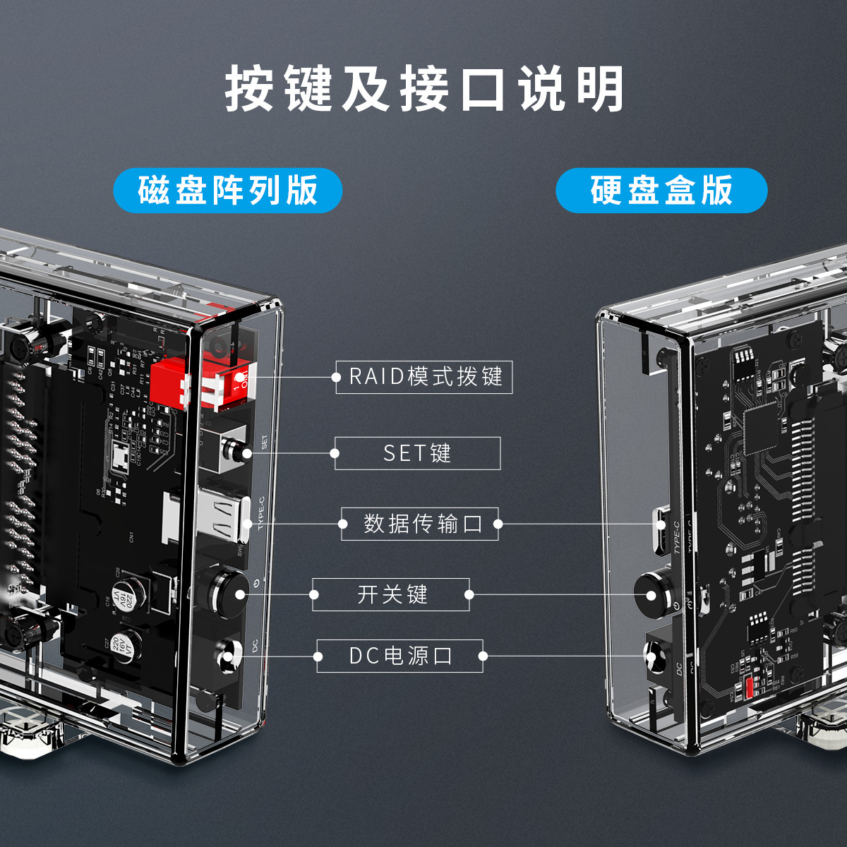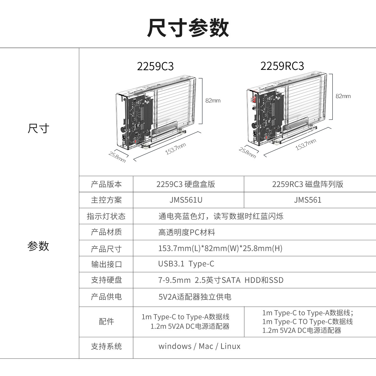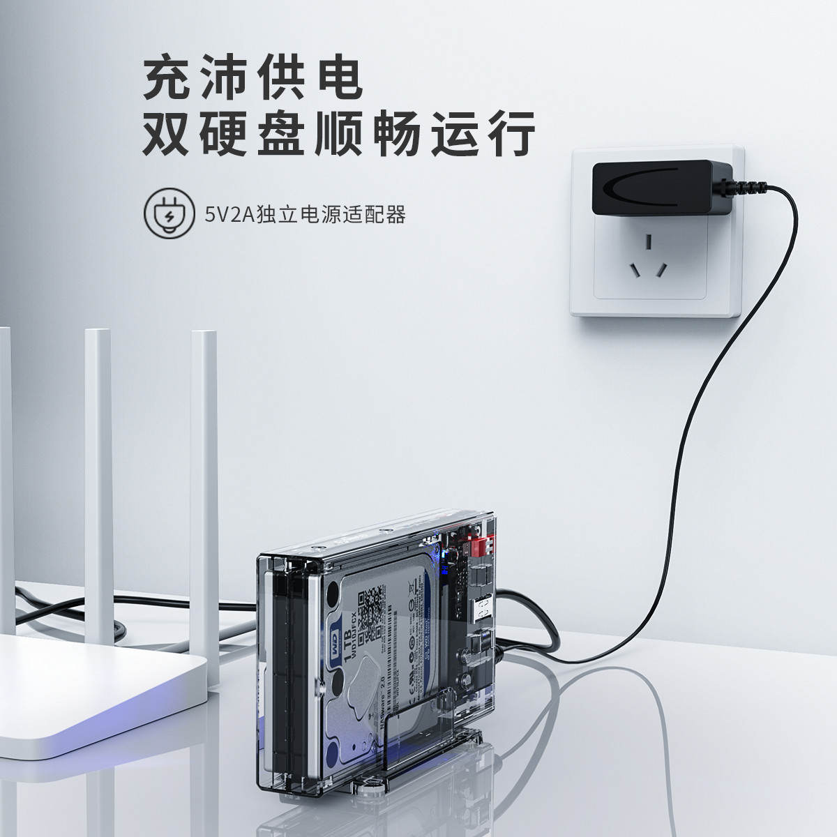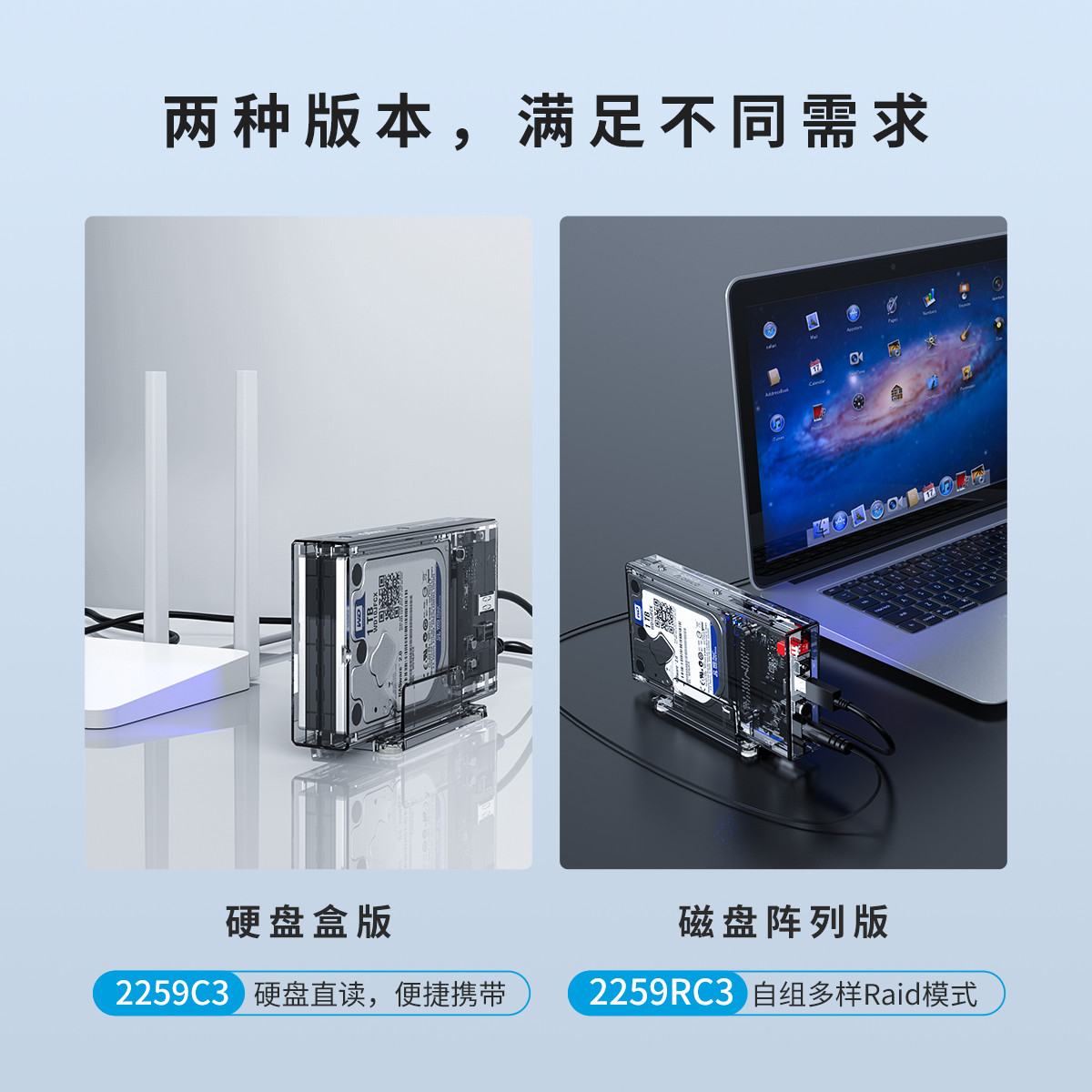 2.5寸雙盤位透明硬盤盒