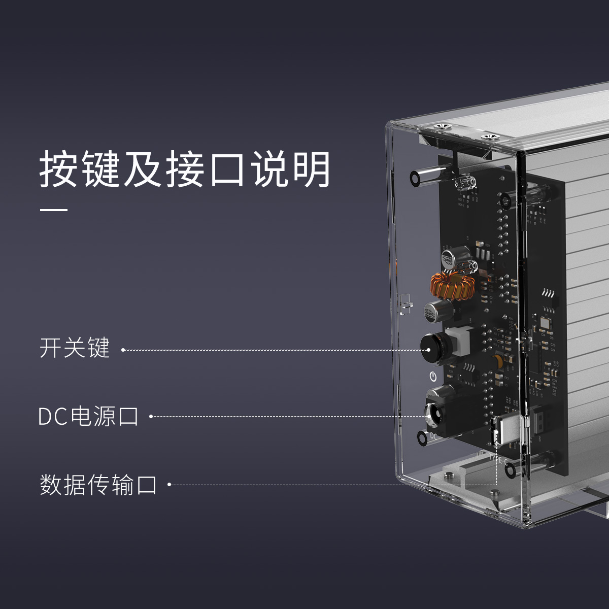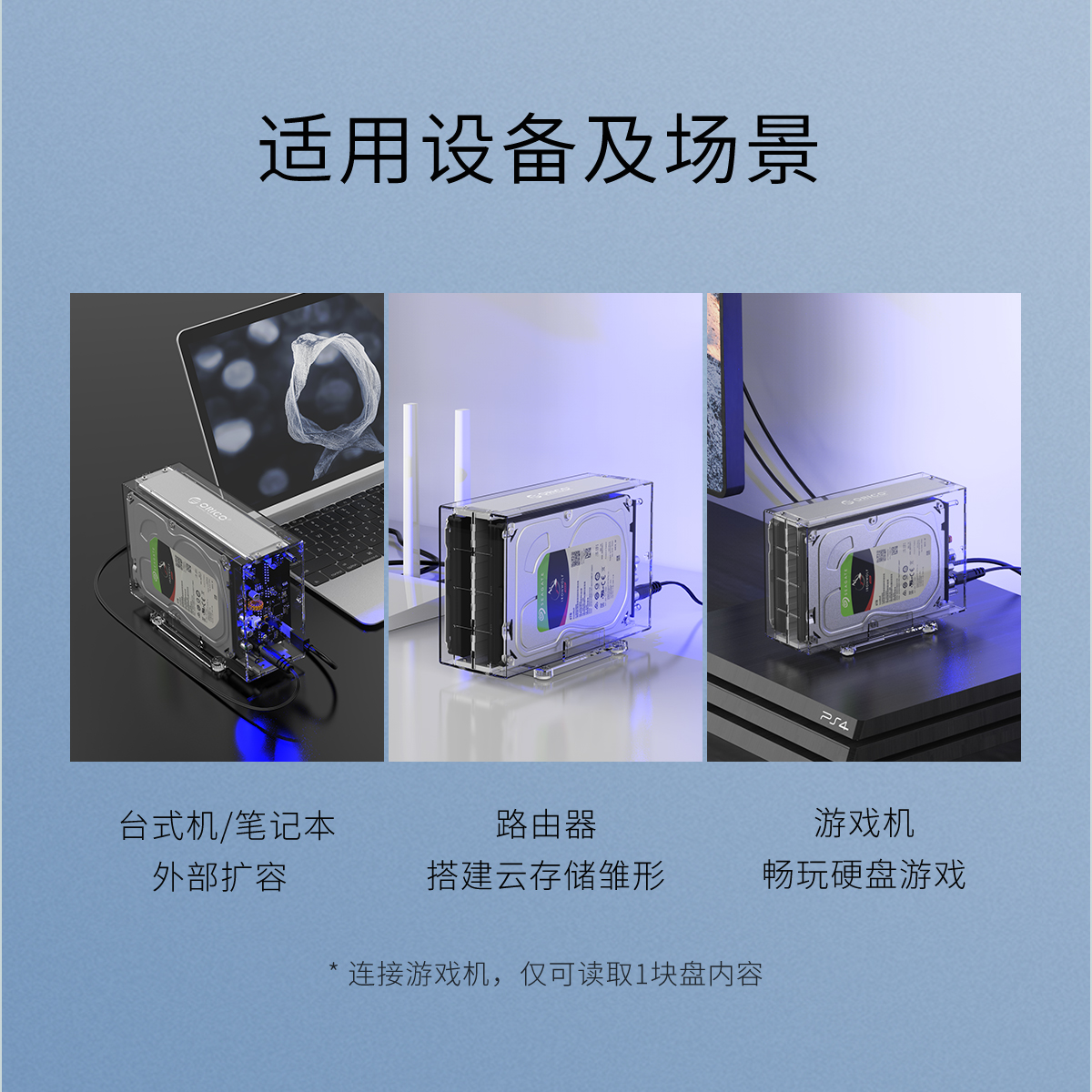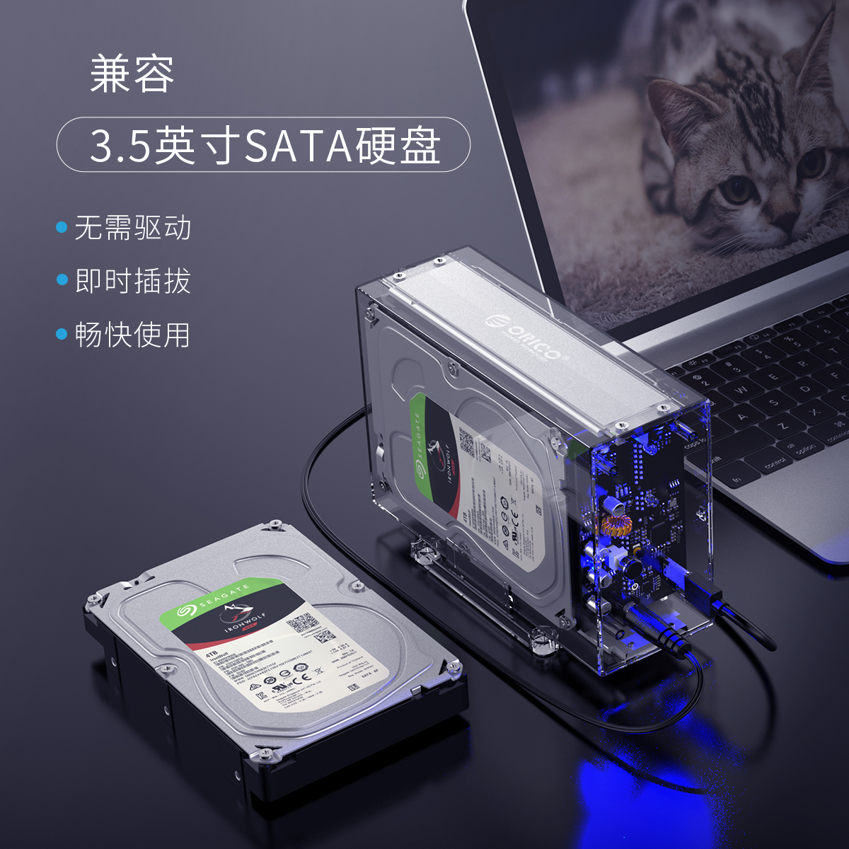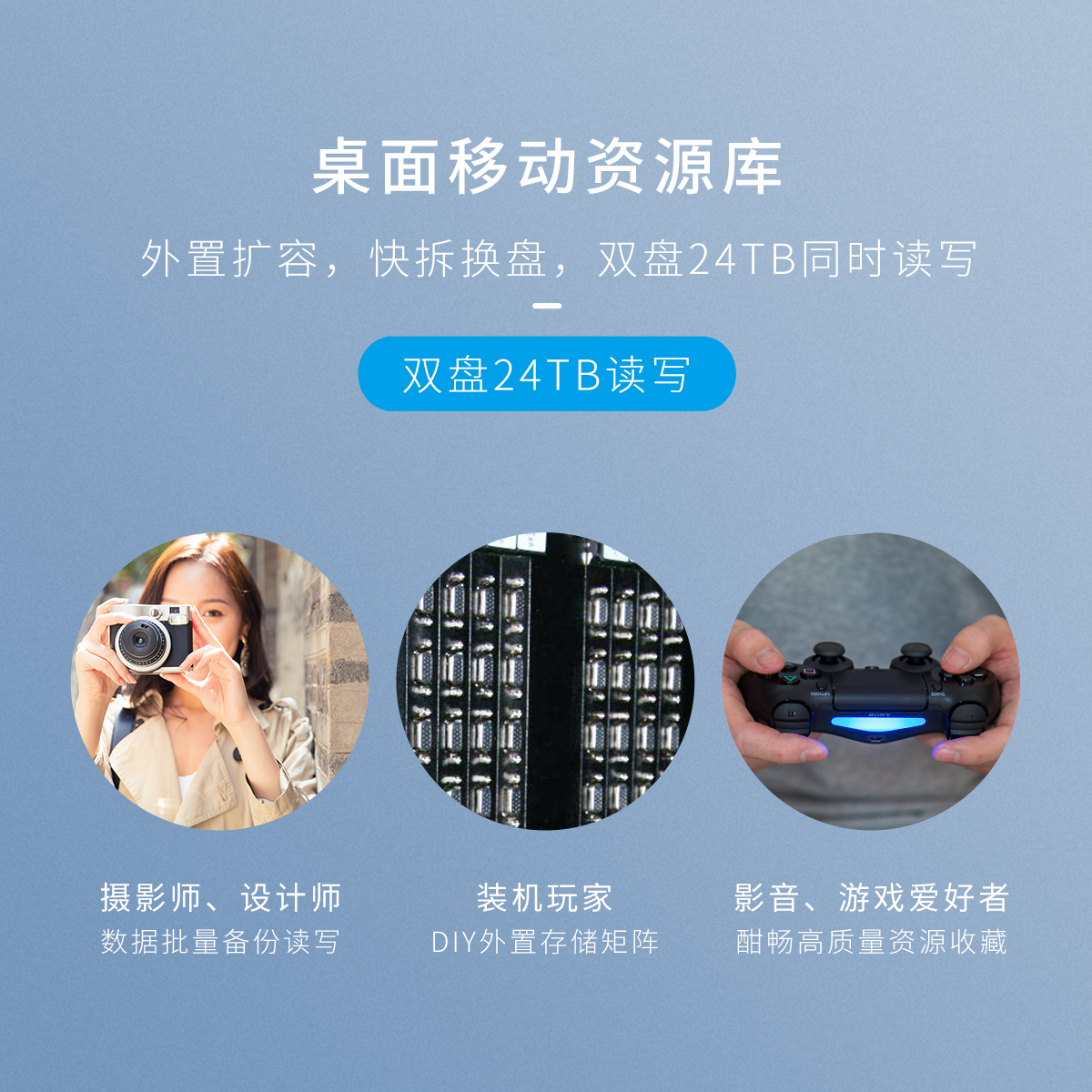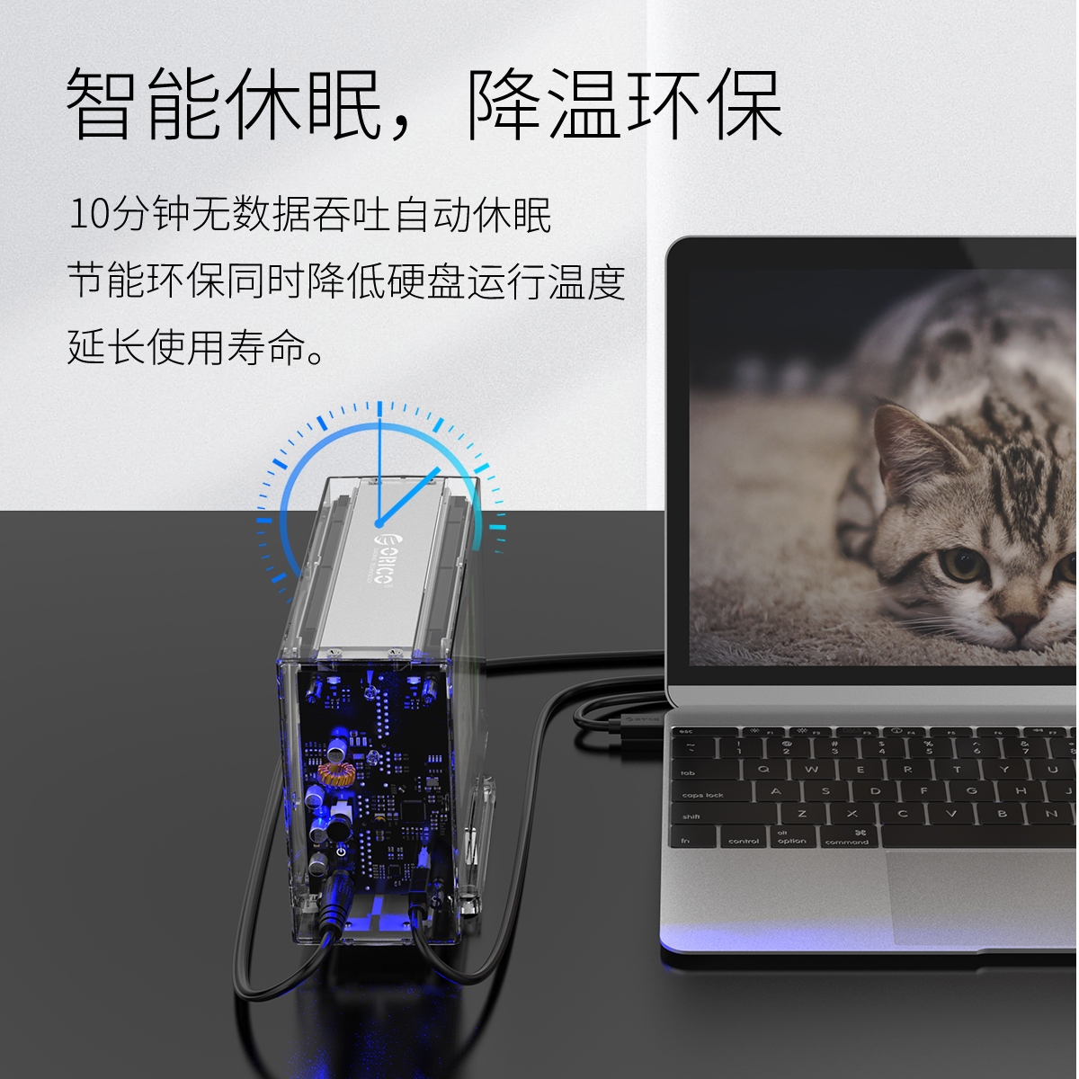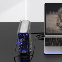 全景透視外殼,盡顯透明真芯,雙盤24T大容量,免工具快速安裝,當你的桌面迷你硬盤柜