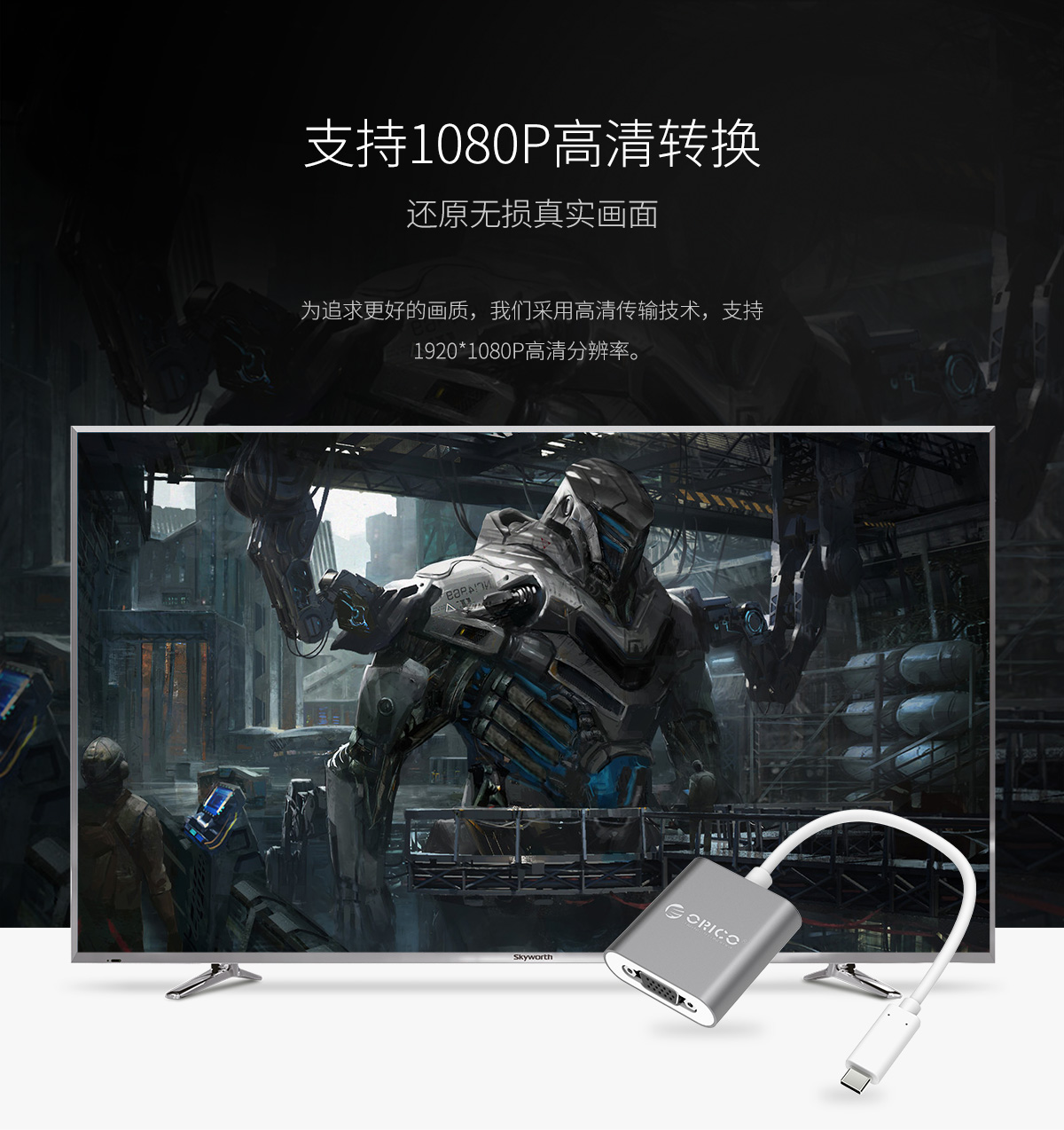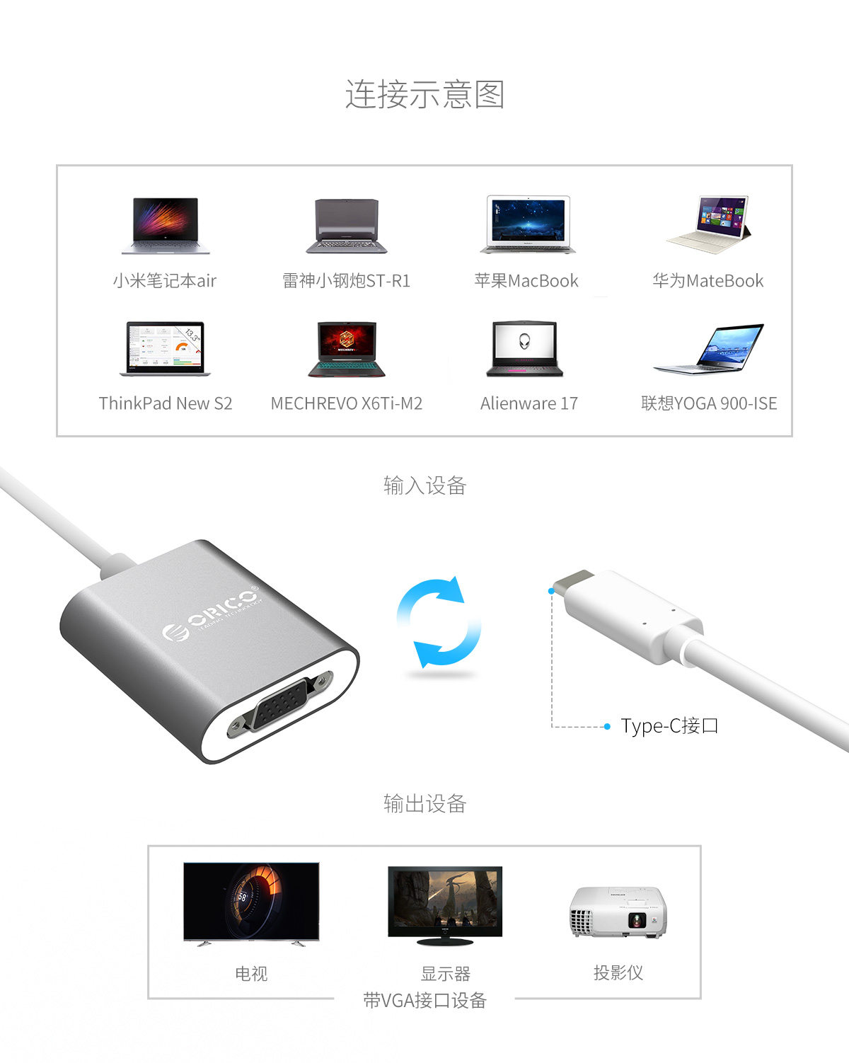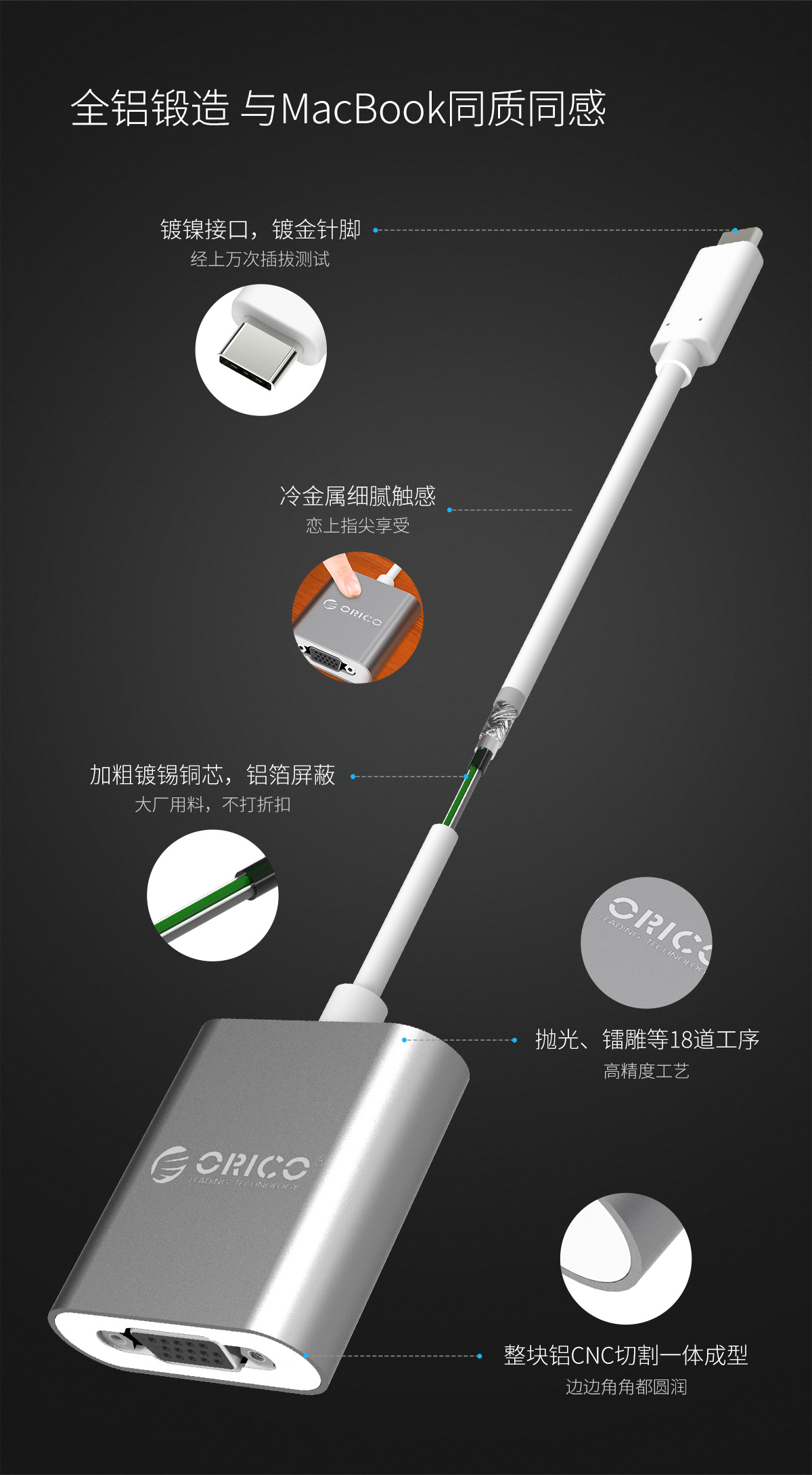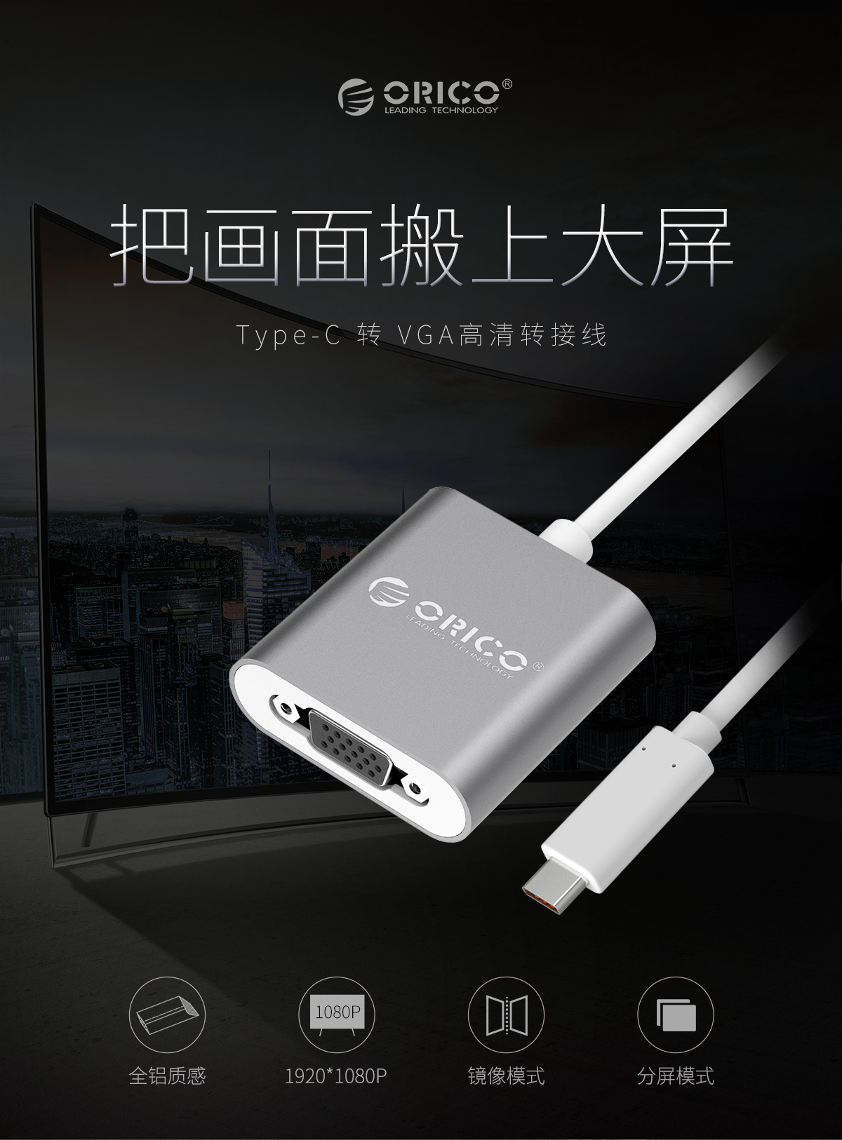 Type-c轉VGA高清全鋁質感延長線轉換器