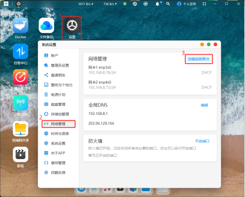 1.點擊【設置】—>【網絡管理】—>【創建鏈路聚合】
