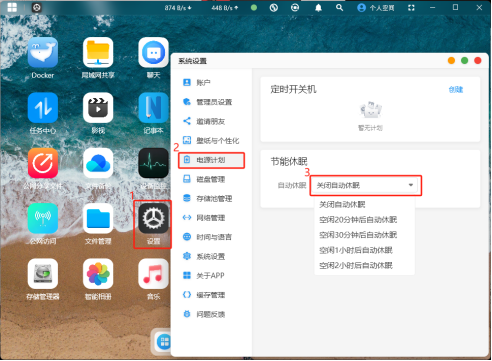 3.可仔細設置主機設備及硬盤的休眠時間