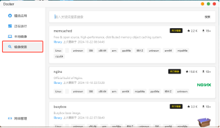“本地鏡像”可以看到已經下載了的Docker容器鏡像,“鏡像搜索”可以搜索下載所需的鏡像。